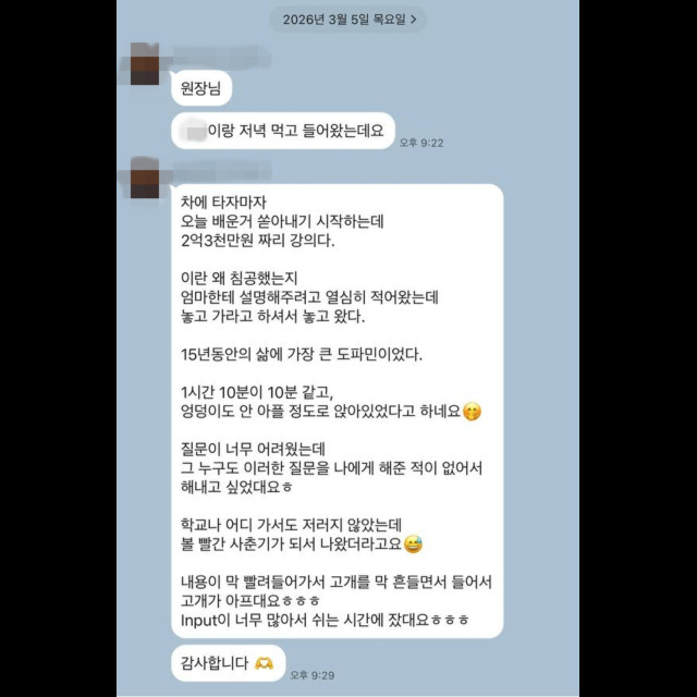 2억3천만원 짜리 강의라는 학생의 말을 전해주는 학부모님 너무 감사합니다.
